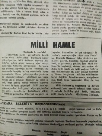* Makalenin adı; MİLLÎ HAMLE. Altı paragraftan oluşuyor.