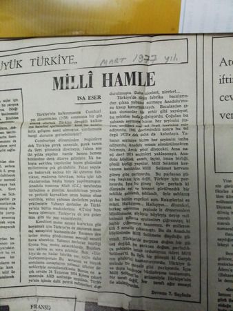Bu sıradan bir gazete kupürü değil, 1977 yılı Mart ayına ait Millî Gazete’mizin bir kupürü.