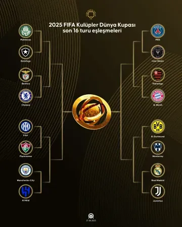 2025 FIFA Kulüpler Dünya Kupası'nda grup maçlarının tamamlanmasıyla son 16 eşleşmeleri belli oldu.