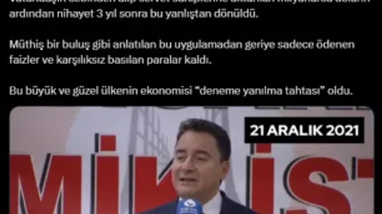 Sosyal medya hesabından 2021'de konuyla ilgili yaptığı açıklamanın görüntüsünü paylaşan Babacan, şunları kaydetti: