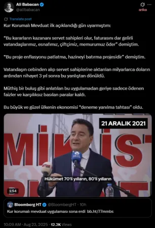 "Kur Korumalı Mevduat ilk açıklandığı gün uyarmıştım: 'Bu kararların kazananı servet sahipleri olur, faturasını dar gelirli vatandaşlarımız, esnafımız, çiftçimiz, memurumuz öder' demiştim. 'Bu proje enflasyonu patlatma, hazineyi batırma projesidir' demiştim.