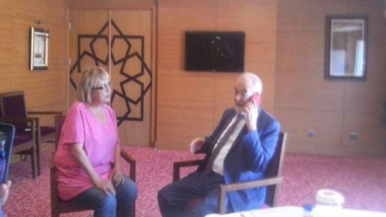 Saadet Partisi Genel Başkanı ve Cumhurbaşkanı adayı Temel Karamollaoğlu'na röportan sırasında sürpriz bir telefon geldi. Alparslan Türkeş'in eşi Seval Türkeş, Karamollaoğlu'na desteklerini bildirdi.