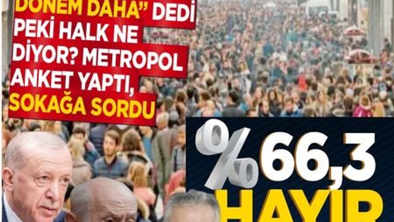 Metropoll’ün yaptığı anket sonuçlarına göre, Erdoğan'ın yeniden aday olması için Anayasa değişikliği yapılmasına 'hayır' diyenlerin oranı yüzde 66.3 çıktı.