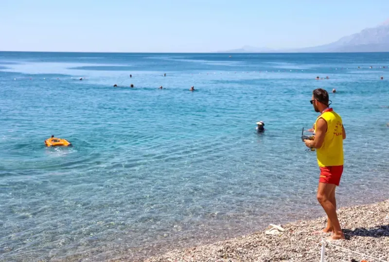 Antalya Büyükşehir Belediyesi'nden yapılan açıklamaya göre, geçen yıllarda hizmete sunulan insansız cankurtaran robotu, Konyaaltı Sahili'ndeki EKDAĞ Plajı'nda görev yapıyor.