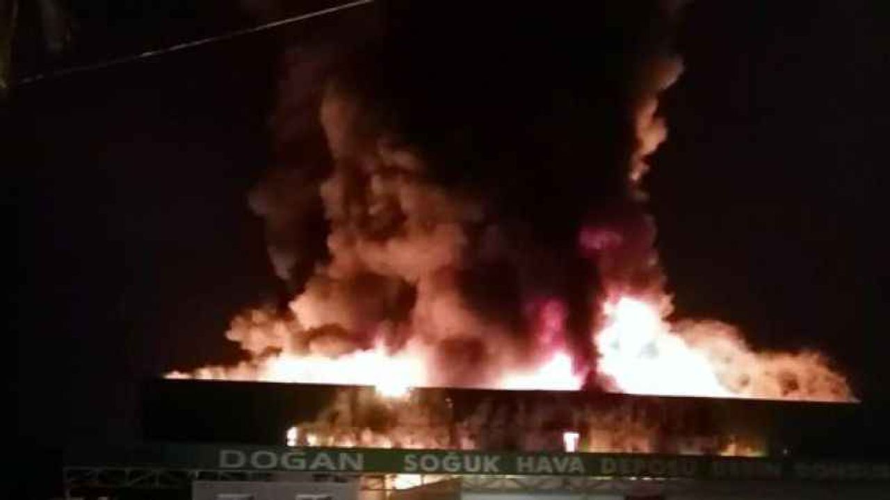 Antalya'nın Serik ilçesine bağlı Kocayatak Mahallesi'nde bir soğuk hava deposunda çıkan yangın devam ediyor.