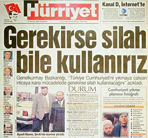 Bu manşetini de unutmuyoruz Hürriyet’in. Erbakan’ın gidebileceği ihtimalini, önceki başlıklarıyla, şeytanın aklına taş düşürme eylemine dönüştüren Hürriyet, bugün FETÖ diye sıfatlanan o ortağına tüm adamlarını ve TV kanallarını vererek yapmıştı son vuruşunu.