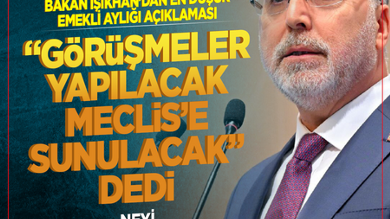 En düşük emekli aylığı için enflasyon rakamları sonrasında gerekli görüşmelerin yapılacağını bildiren Çalışma ve Sosyal Güvenlik Bakanı Vedat Işıkhan, "Konu ile ilgili rakam çok kısa süre içinde Meclis’e sunulacaktır. Takdir Türkiye Büyük Millet Meclisi’nindir" açıklamasında bulundu.