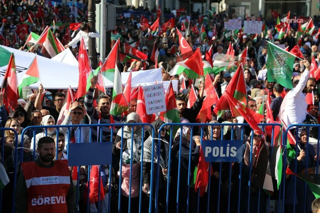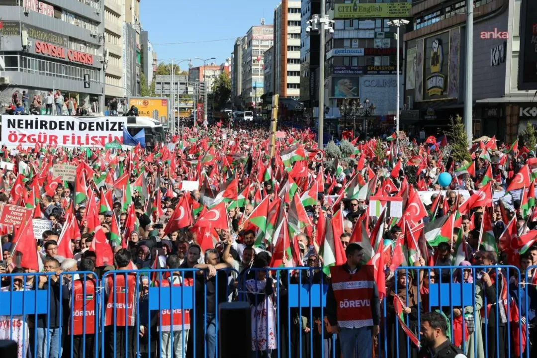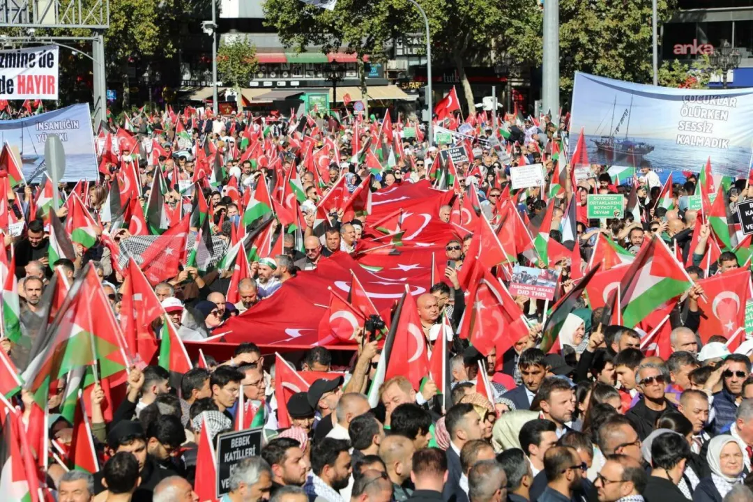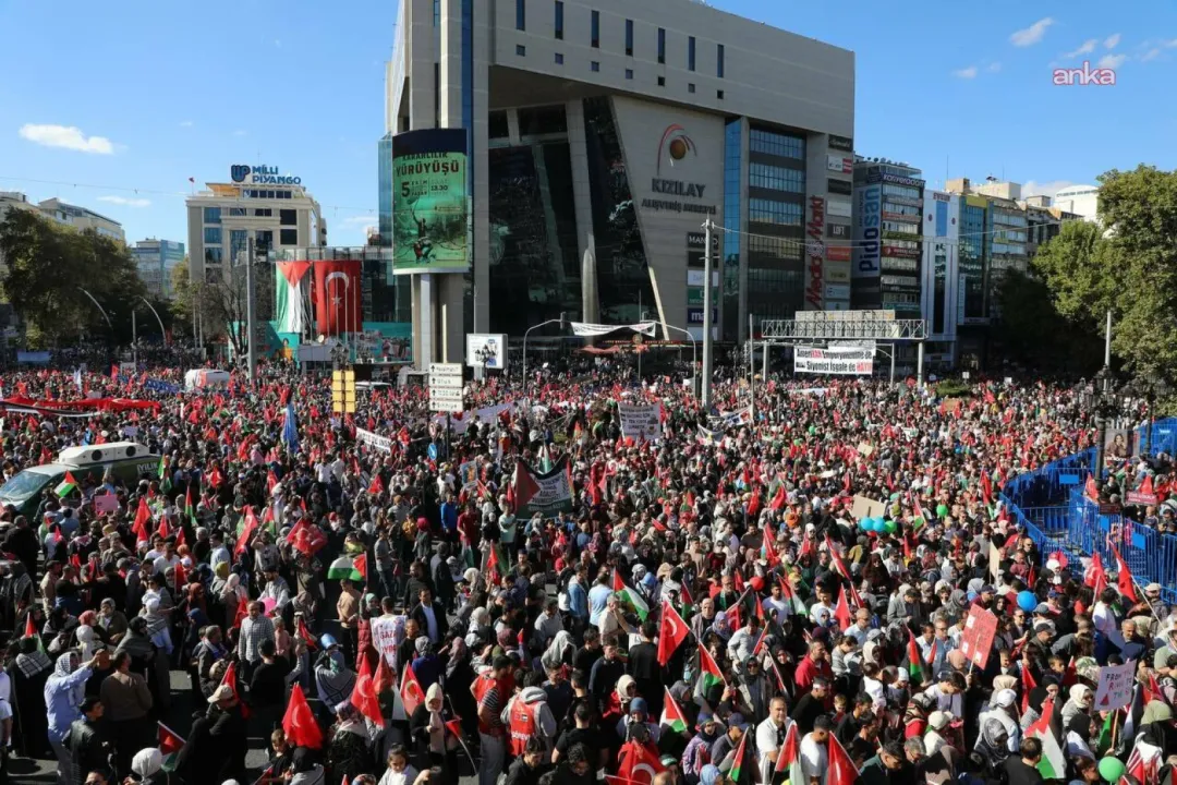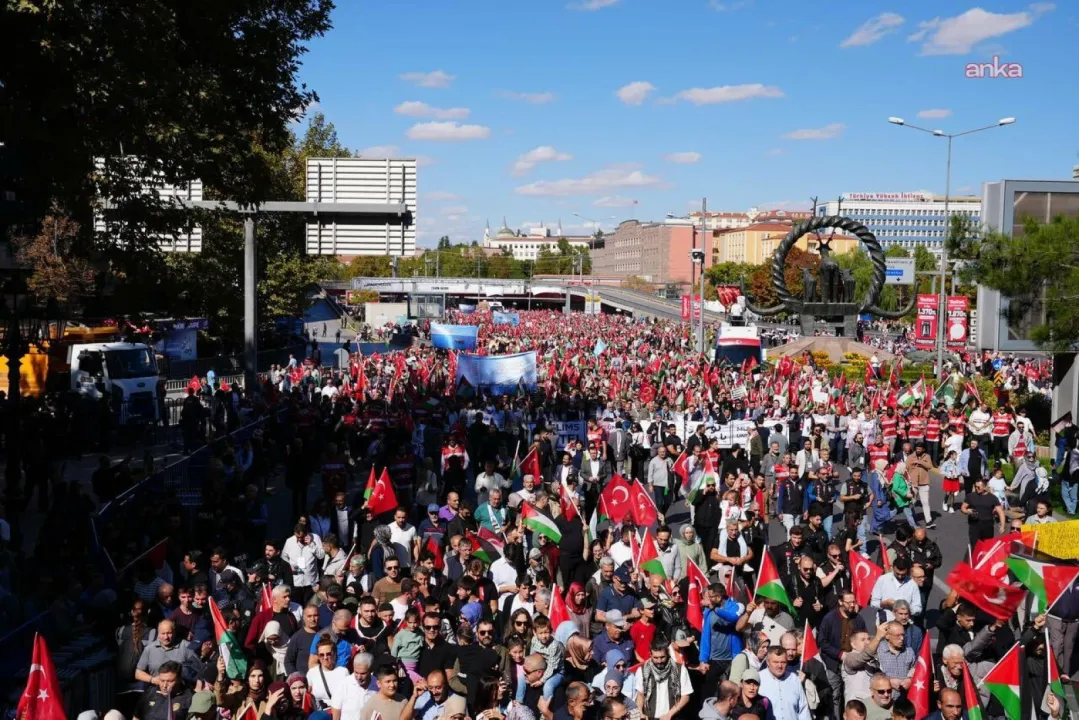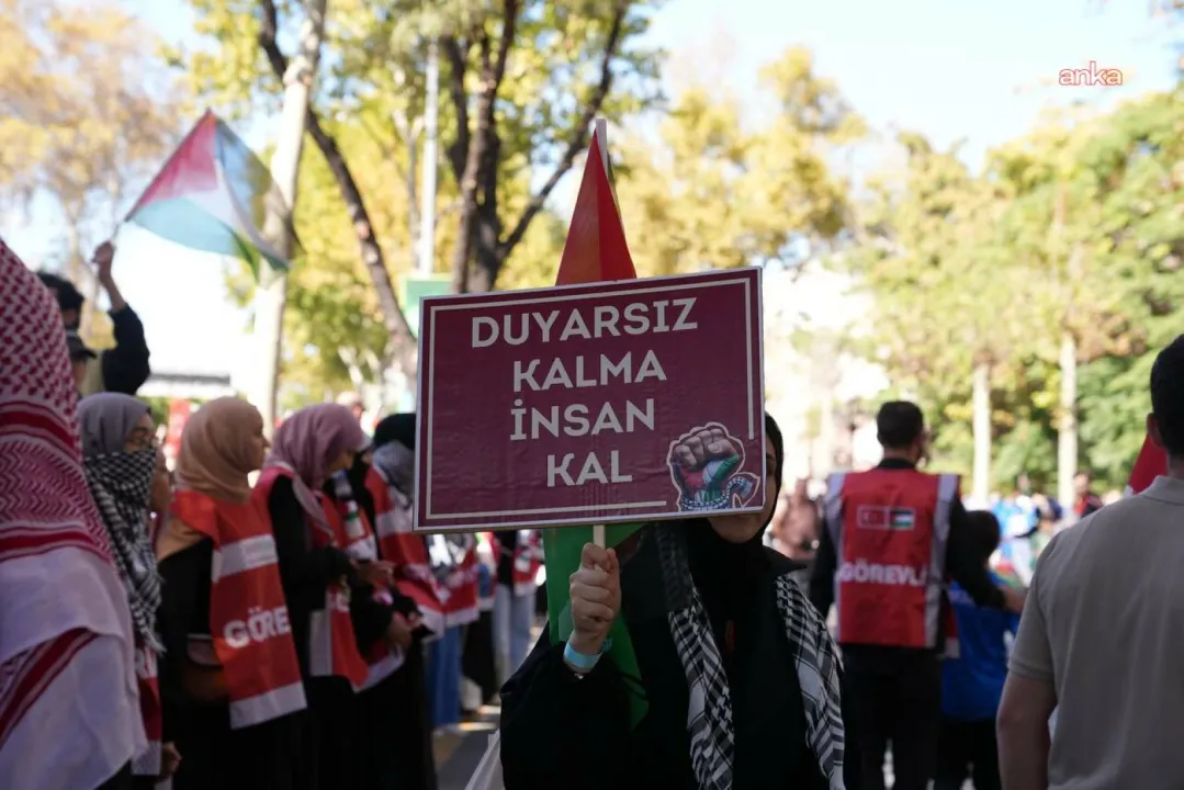 Ankara Filistin Dayanışma Platformu üyesi sivil toplum kuruluşları, Gazze'ye destek için Melike Hatun Camisi'nde bir araya gelerek, Kızılay Meydanı'na "Gazze Kararlılık Yürüyüşü" düzenledi.