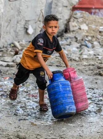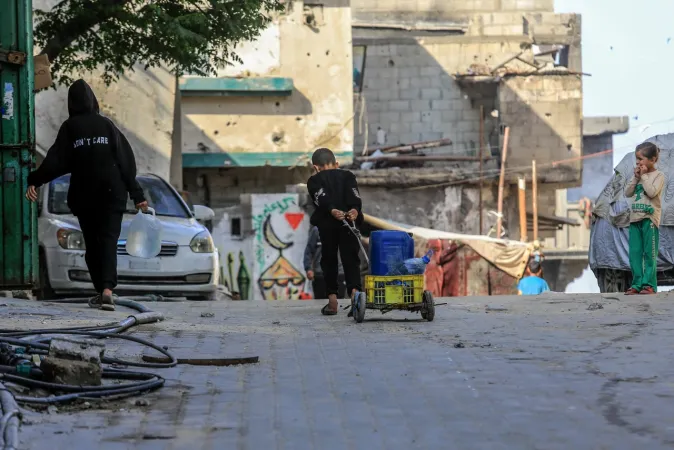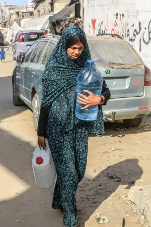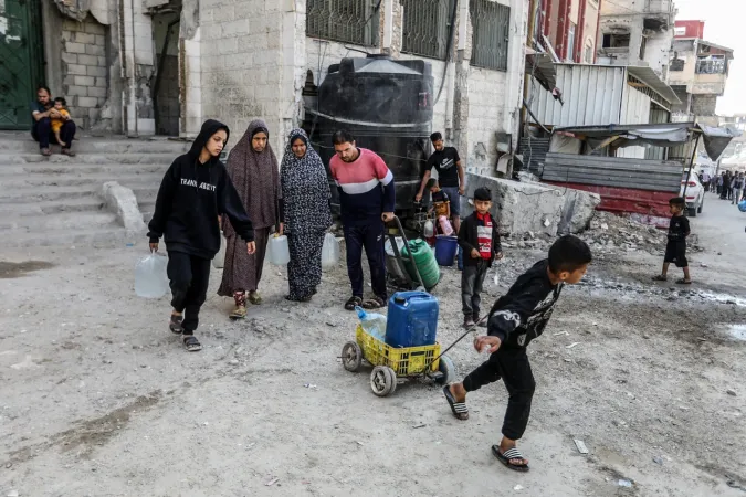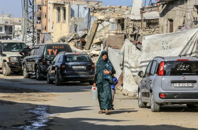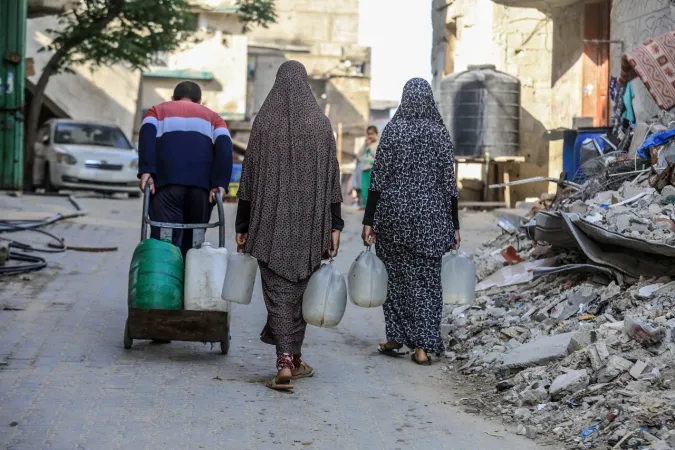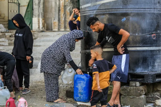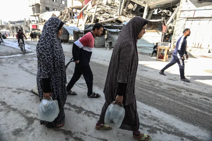 Hamas ile varılan ateşkesi ihlal ederek Gazze Şeridi'ne yeniden saldırılar başlatan barbar İsrail, soykırımına devam ederken, bölgede insani kriz giderek derinleşiyor. Abluka altındaki Gazze Şeridi'nin güneyinde bulunan Han Yunus kentinde Filistinliler su deposundan suyu bidonlarına doldurarak günlük ihtiyaçlarını karşılamaya çalışıyor.