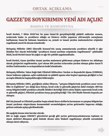 “İsrail Devleti, 7 Ekim 2023'ten bu yana Gazze'de gerçekleştirdiği şiddetli saldırılar sonucu, aralarında kadın ve çocukların olduğu on binlerce sivilin yaşamını yitirmesiyle sonuçlanan katliamına; Gazze'de bulunan insanların su, yemek ve insani yardım malzemelerine erişimini engellemek sureti ile devam etmektedir. Birleşmiş Milletler (BM) Güvenlik Konseyi'nin savaş zamanlarında çocuklara yönelik 6 ağır ihlalden biri olarak belirlediği 'çocukların insani yardıma erişiminin engellenmesi' şeklindeki ihlali, İsrail Devleti Gazze'de yoğun ve ağır bir şekilde uygulamaktadır.