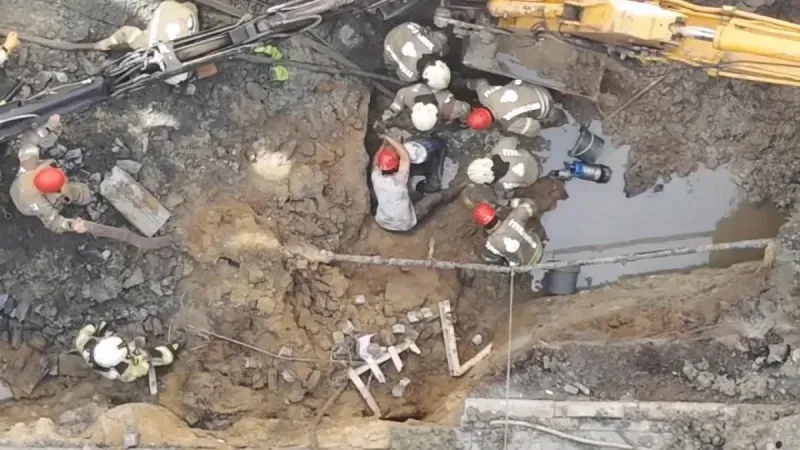 Ekiplerin işçiyi kurtarma çalışmaları sonuç verdi ve işçi kurtarıldı.
