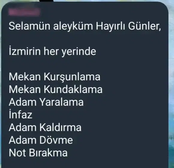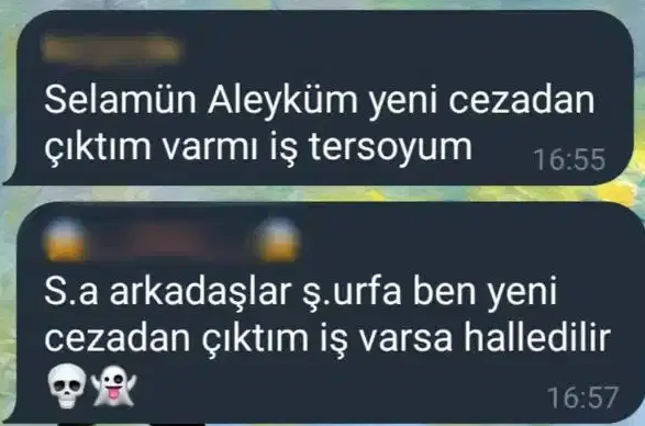 "Bu paketi millî piyango gibi gören kimi mahkûmlar, şimdi Telegram gruplarında yaralama, gasp, öldürme gibi suçlar için ilan vermeye başladı. ‘Selamünaleyküm, yeni cezaevinden çıktım’ diyerek İzmir’in her yerinde mekân kurşunlama, kundaklama, adam yaralama, infaz, adam kaldırma gibi suçları sıralıyorlar. Bu kanunun getirdiği sıkıntılardan biri de budur."