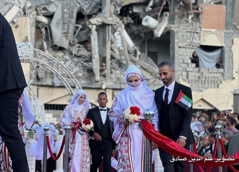 Bombaların susturmadığı, gökyüzünün güven vermediği bir şehirde; gelinlikler, işlemeli geleneksel kıyafetler ve davetlilerin neşesi, yıkıntılar arasında yeniden filizlenen hayatın sembolü oldu.