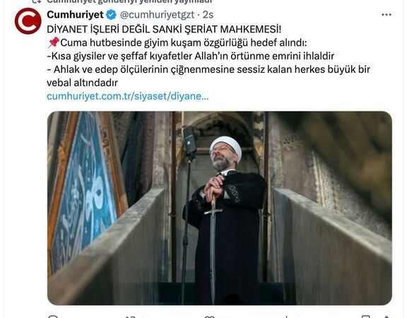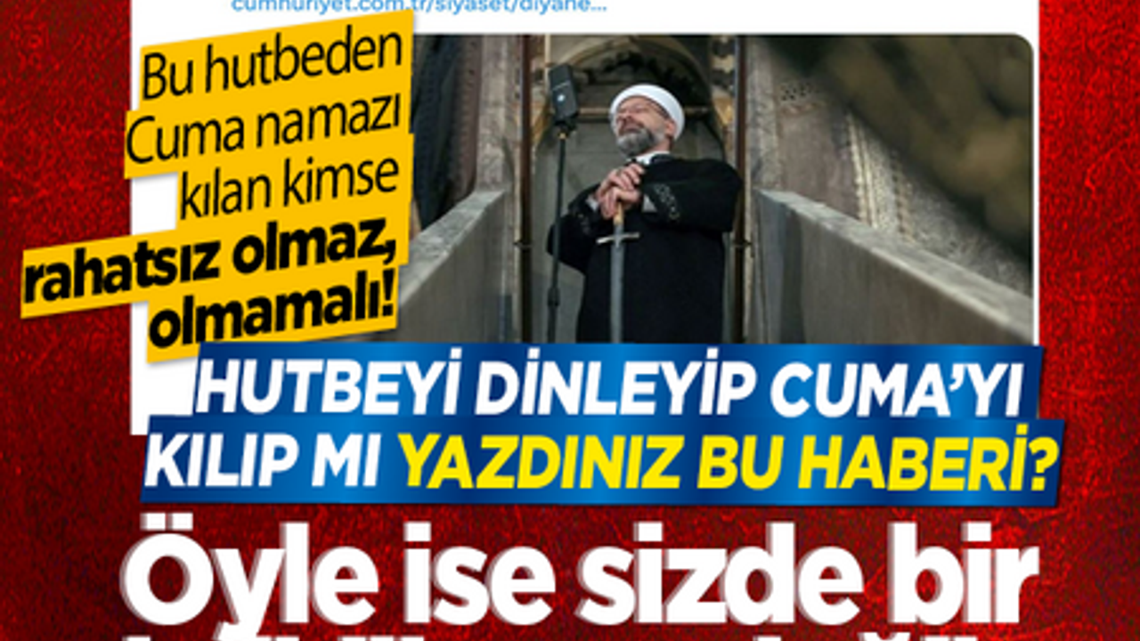 Bugün camilerde "Hayâ: Allah’ın Emri, Fıtratın Gereği" başlığı ile okunan hutbeden bu kez de Cumhuriyet Gazetesi rahatsız olmuş.
