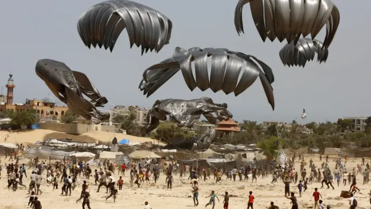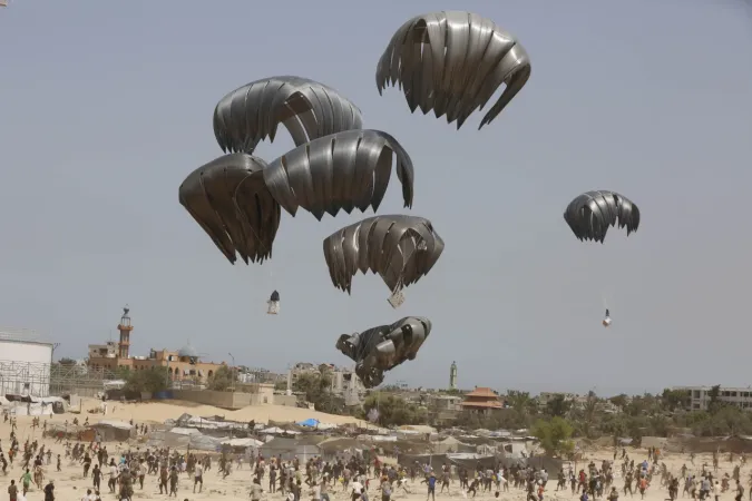 İsrail'in saldırısı ve ambargosu altındaki Gazze Şeridi'ne havadan paraşütle insani yardım malzemesi indirme girişimleri devam ediliyor. Askeri kargo uçakları tarafından bırakılan yardım malzemelerine ulaşmak isteyen bir grup Filistinli, Gazze'nin orta kesimindeki Deyr el-Belah'ın batısında toplandı. Bölgede toplanan kalabalık, havadan indirilen yardım malzemelerine ulaşmak için kargoların düştüğü yere akın etti.