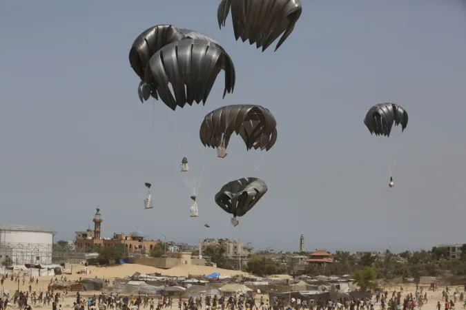 Gazze Şeridi'ne paraşütle insani yardım malzemesi indiriliyor