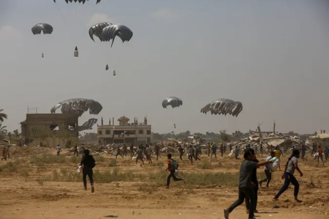 2 Mart'tan bu yana sınır kapılarının tamamen kapalı olduğu Gazze Şeridi'nde insanlar açlık, yokluk, kıtlık ve sefalet içinde yaşıyor. Sınır kapılarından sınırlı şekilde insani yardım girişi oluyor ama bu okyanusta bir damla gibi kalıyor. İsrail'in saldırısı ve ambargosu altındaki Gazze Şeridi'ne havadan paraşütle insani yardım malzemesi indirme girişimleri devam ediyor. Uçaklar, Gazze Şeridi'nin orta kesiminde yer alan Deyr Belah kentine paraşütle havadan yardım indirdi.