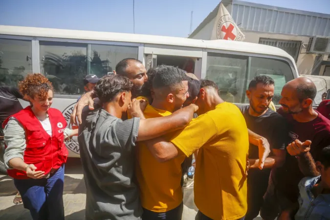 İsrail ordusu, 7 Ekim 2023'ten bu yana Gazze Şeridi’nde alıkoyduğu 13 Filistinliyi aylar süren gözaltının ardından serbest bıraktı. Serbest bırakılan Filistinliler, Uluslararası Kızılhaç Komitesi’ne ait araçlarla Gazze’nin orta kesimindeki Deyr Belah kentinde bulunan El-Aksa Şehitleri Hastanesi’ne nakledildi.