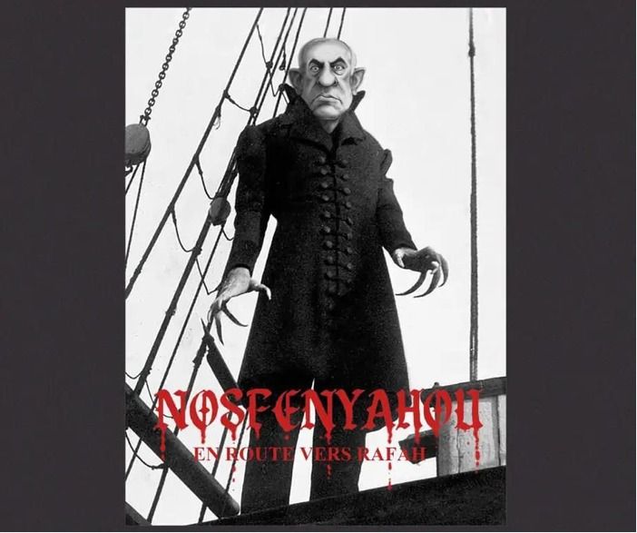 Şeytanlar deşifre olmuştu. Bunun etkisiyle tüm dünyada şeytanın ideolojisi olan Siyonizm’in liderliğine soyunan Netanyahu, şeytan şeklinde tasvir edildi. Mesela Kanada’nın Montreal kentinde Fransızca yayın yapan günlük La Presse Gazetesi, başbakanı sivri kulakları ve pençeleriyle, “Rafah'a giden” yelkenli geminin güvertesinde dururken resmetti. Gazete, Netanyahu'yu sivri kulakları ve pençeleriyle, uzun bir palto giymiş olarak bir yelkenli geminin güvertesinde dururken gösterdi. Bu görüntü, 1922 yapımı Nosferatu filmindeki vampiri anımsatıyordu. Resmin altında “Nosfenyahou Rafah'a doğru yol alıyor” yazan bir başlık vardı.[1]