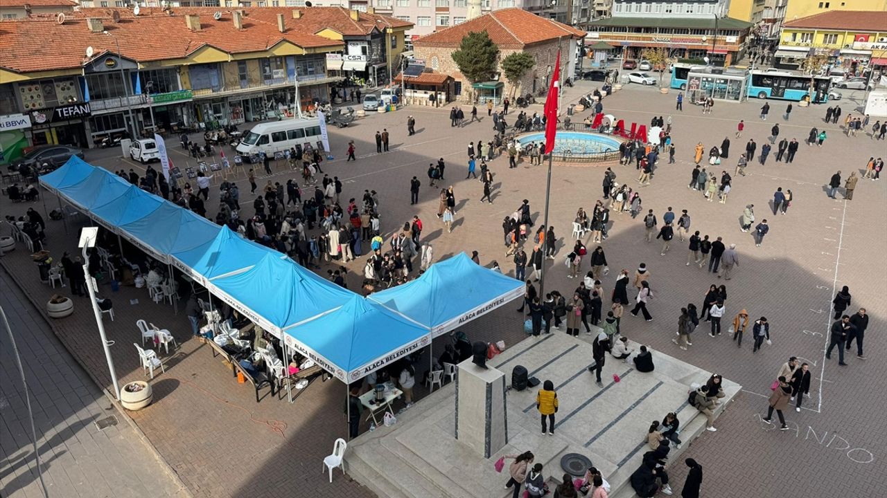 Çorum'un Alaca ilçesinde öğrenciler, İsrail'in saldırıları nedeniyle zor şartlarda yaşam mücadelesi veren Gazze halkına destek olmak amacıyla kermes düzenledi. Alaca İlçe Milli Eğitim Müdürlüğünce "Çevreme Duyarlıyım, Değerlerime Sahip Çıkıyorum Projesi (ÇEDES)" kapsamında Cumhuriyet Meydanı'nda açılan kermeste, Hafız Süleyman Coşkun İmam Hatip ile Alaca Mesleki ve Teknik Anadolu liseleri, Alaca İmam Hatip, Selin Şahin ile Denizhan ortaokullarının öğrenci ve velilerince hazırlanan yiyecekler satışa sunuldu.