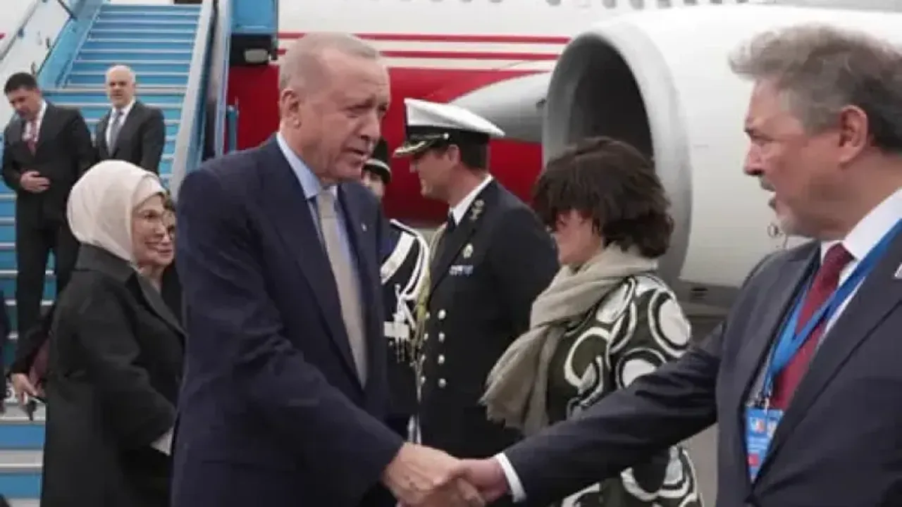 Cumhurbaşkanı Erdoğan’a ziyaretinde, eşi Emine Erdoğan, Dışişleri Bakanı Hakan Fidan ve Millî Savunma Bakanı Yaşar Güler eşlik ediyor.