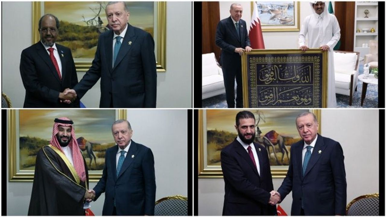 Cumhurbaşkanı Recep Tayyip Erdoğan, İslam İşbirliği Teşkilatı ve Arap Ligi Olağanüstü Zirvesi için bulunduğu Katar’da Irak, Somali, Suudi Arabistan, Suriye, Katar liderleriyle görüştü.
