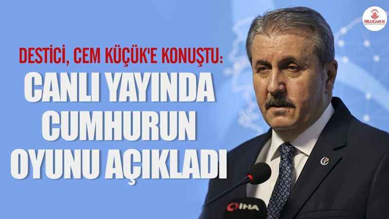 Cumhur İttifakı ortaklarından Büyük Birlik Partsi’nin (BBP) Genel Başkanı Mustafa Destici, iktidara yakınlığı ile bilinen Türkiye gazetesi yazarı Cem Küçük'ün TGRT Haber'de sunduğu programa katıldı.