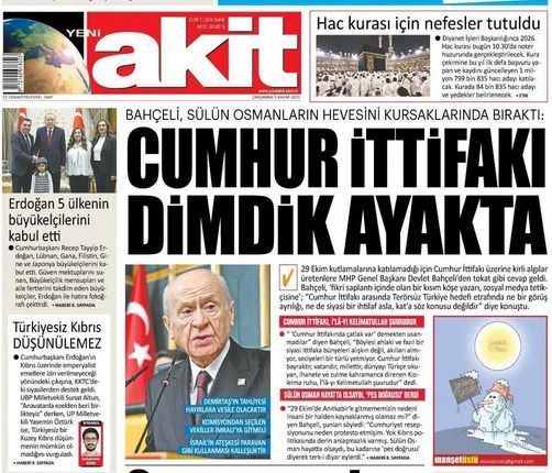 Buyurun, ekte bugünün iktidara yakın gazetelerinin manşetini sizin için toparladık.