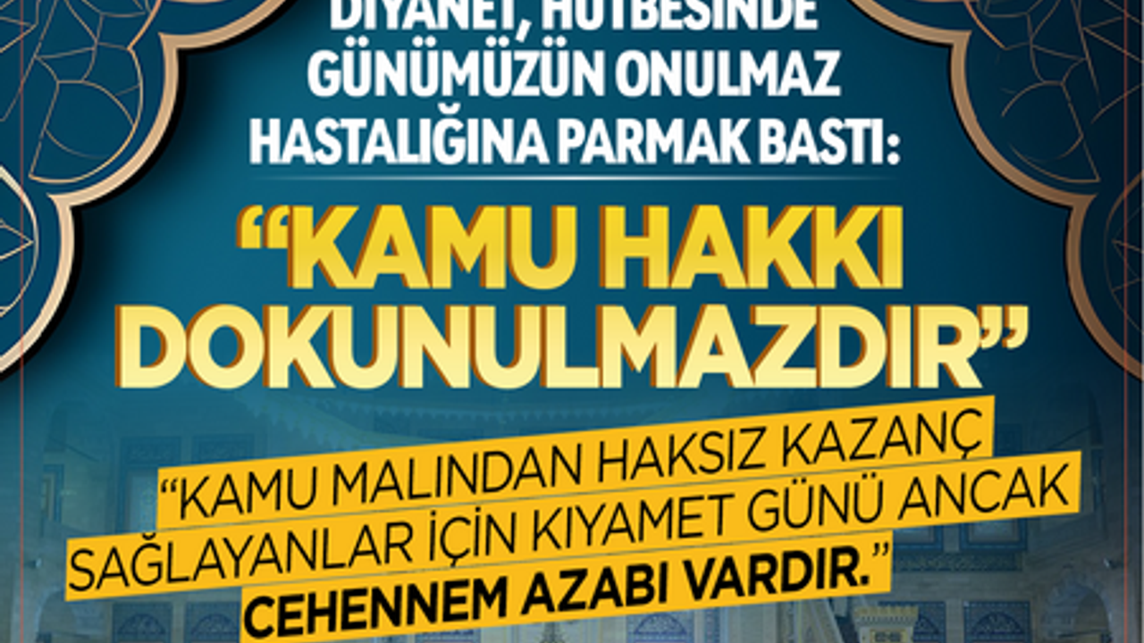 Bu haftaki hutbenin ana teması, toplumda büyük önem taşıyan bir mesele olan "Kamu Hakkı Dokunulmazdır" olarak belirlendi.