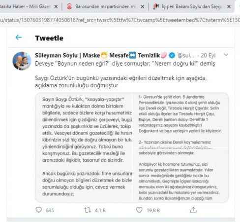 “Şaşkınlıkla ve üzülerek” de olsa yine takiplerindeymiş Sözcü gazetesinden Saygı Öztürk.