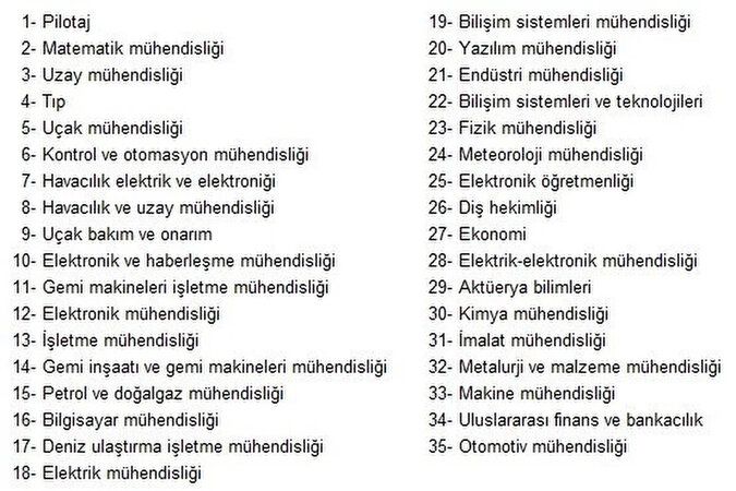 TÜİK’in 2024 verilerine göre lisans mezunları arasında aylık ortalama kazancı en yüksek olan bölüm pilotaj oldu. Bu alanı şu bölümler takip etti: