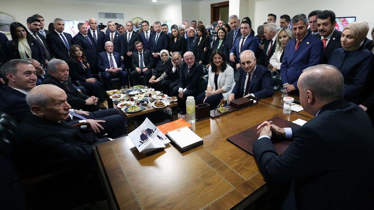 Görüşmede, Meclis’in yeni yasama yılı ve güncel siyasi gelişmelerin yanı sıra partiler arası diyalog konuları ele alındı. Erdoğan, Meclis üyeleri ve liderlerle fikir alışverişinde bulunarak, iş birliği mesajı verdi.