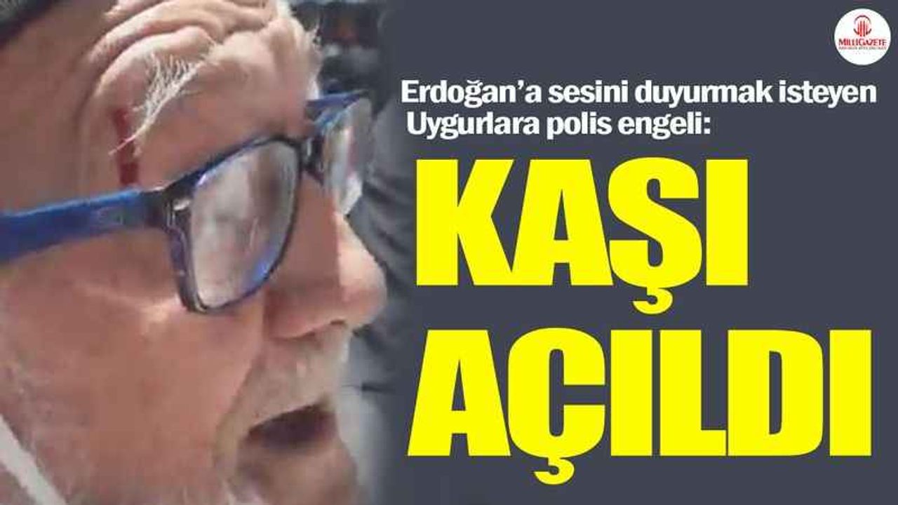 Polislerle yaşanan arbede sırasında bayrağı kaldırmak istemeyen 81 yaşındaki Mahmut Tohti Amin yere düşerek kaşı açıldı. Uygur dedenin parmağının da kırıldığı öğrenildi.