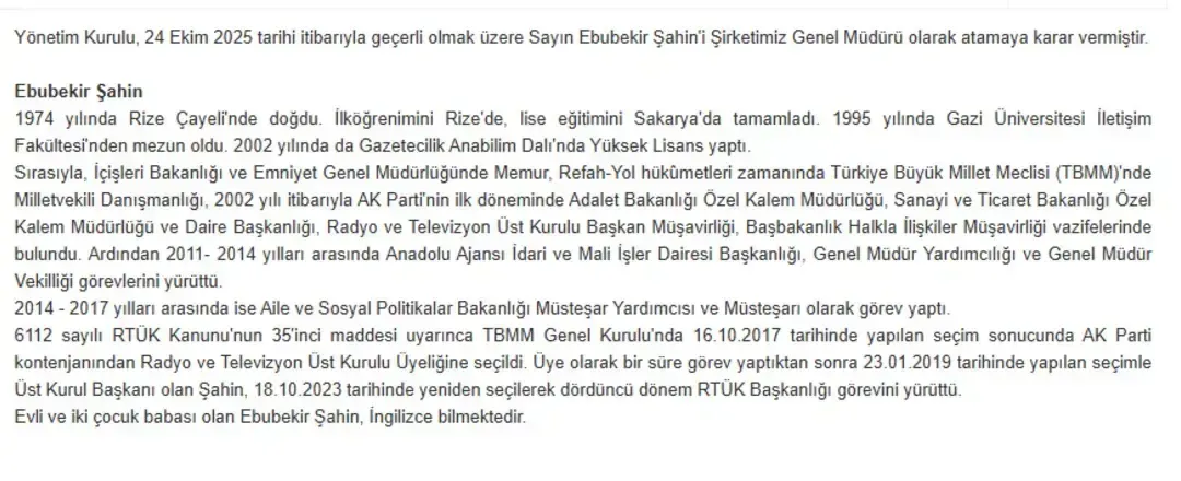 Dört dönemdir RTÜK Başkanlığı görevini sürdüren Ebubekir Şahin, bu dönem başkanlığa aday olmadı. 23 Ocak 2019 tarihinden bu yana dört kez RTÜK Başkanlığı görevine seçilen Şahin'in görev süresinin sona ermesinin ardından Üst Kurul üyeleri yeni başkanı belirlemek üzere toplandı. Gerçekleştirilen toplantıda RTÜK Başkanlığı'na Kurul üyelerinden AKP'li Mehmet Daniş, Başkan Vekilliği'ne ise Orhan Karadaş seçildi.
