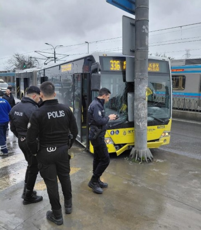 İstanbul'un Sultangazi ilçesinde kayganlaşan yolda virajı alamayan İETT otobüsü, trafik levhası direğine çarparak durabildi. Alınan bilgiye göre, 336 Arnavutköy-Eminönü seferini yapan İETT otobüsü, Malkoçoğlu Mahallesi'nde ilerlediği sırada, yola dökülen yakıt ve yağmur nedeniyle kayganlaşan yolda virajı alamayarak trafik levhası direğine çarptı.