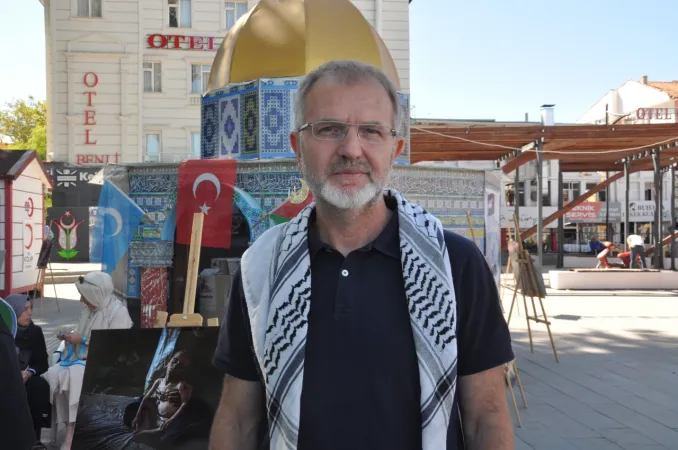 Filoya desteğimizi bileklerimize bağladığımız, Akdeniz’in mavi sularını simgeleyen kurdelelerle gösteriyoruz. Bu kurdelelerimizi vatandaşlarımıza dağıtıyoruz. Biz buradan Küresel Sumud Filosu'na verebileceğimiz en büyük desteği vermeye çalışıyoruz." Ceyhun, Gazze'deki açlığı simgeleyen fotoğraflardan oluşan sergiyle de vatandaşlarda farkındalık oluşturmaya çalıştıklarını belirtti.
