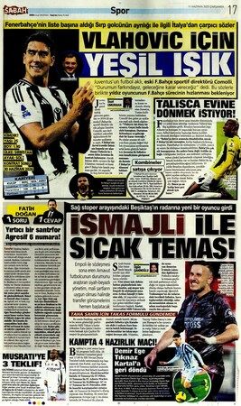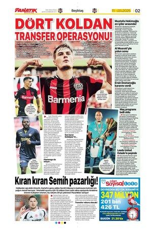 Günün spor manşetlerinde, spor gündemiyle alakalı en yeni gelişmeler yerlerini aldı. 11 Haziran 2025 tarihli gazetelerin spor sayfalarına, Beşiktaş, Fenerbahçe, Galatasaray ve Trabzonspor'a dair haberlere, bir çırpıda göz atın. İşte 11 Haziran 2025 gazete manşetlerinde spor haberleri.