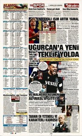11 Haziran 2025 spor haberleri: Gazetelerde futbol manşetleri