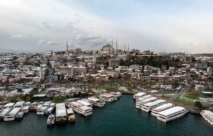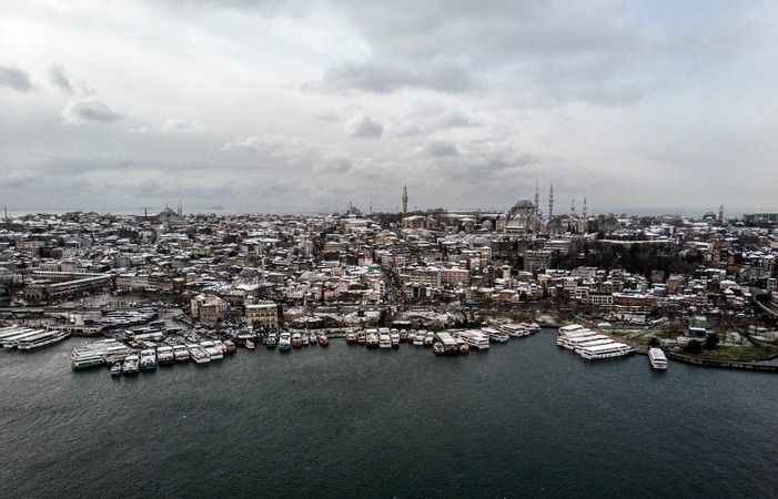 Yoğun kar yağışı Tarihi Yarımada ve çevresindeki yapıları beyaz örtü ile kapladı.