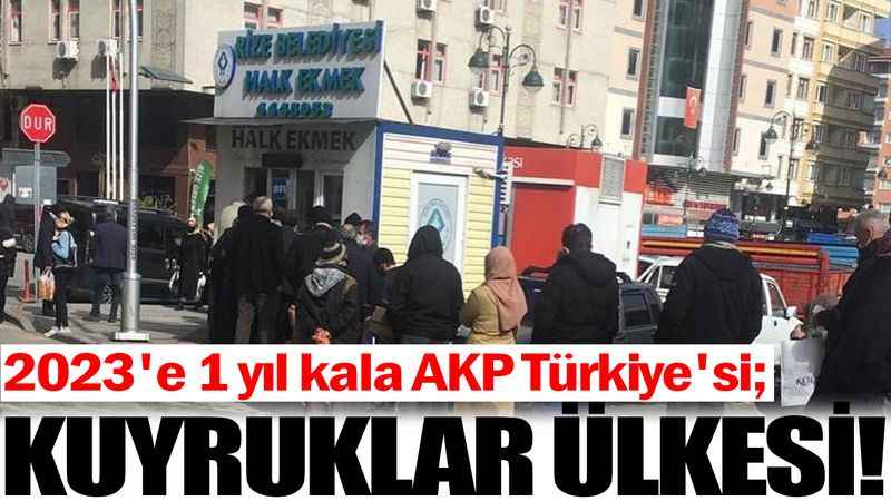 Üretim ekonomisinin yerine tüketim ekonomisini 2002'den beri uygulayan AKP Türkiye'yi fakirleştirdi. Turizm ve inşaat sektörleri üzerinden yandaşlara ihale dağıtarak 20 yılını dolduran AKP Türkiye'yi kuyruklar ülkesine çevirdi. Asgari ücrete övünerek yapılan zammın açlık sınırının altında kaldığı 2022 Türkiye'sinin ilk 6 ayında oluşan çeşit çeşit kuyruklar AKP'nin karnesi için 'görünen köy kılavuz istemez' dedirtti.
