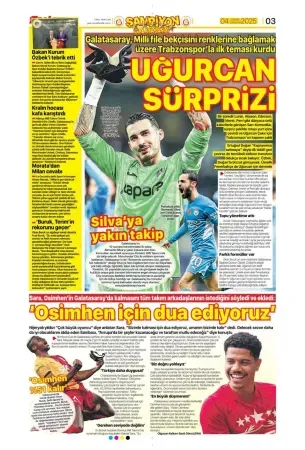Günün spor manşetlerinde, spor gündemiyle alakalı en yeni gelişmeler yerlerini aldı. 4 Haziran 2025 tarihli gazetelerin spor sayfalarına, Beşiktaş, Fenerbahçe, Galatasaray ve Trabzonspor'a dair haberlere, bir çırpıda göz atın. İşte 4 Haziran 2025 gazete manşetlerinde spor haberleri.