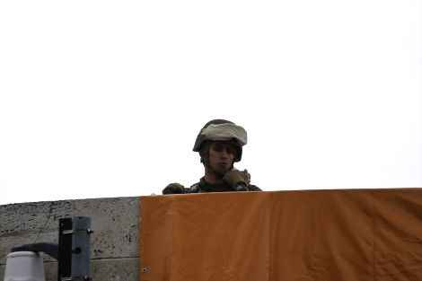 Bu sırada gruptaki bazı kişiler, büyükelçilik binası çatısındaki silahlı ABD askerine tepki gösterdi.