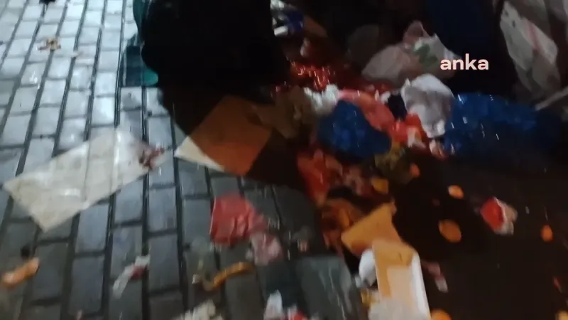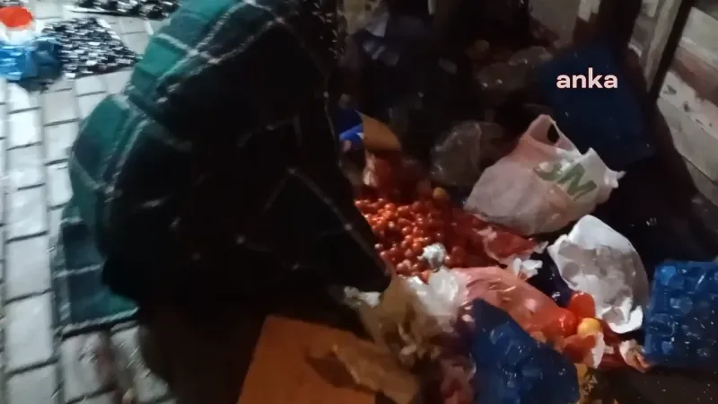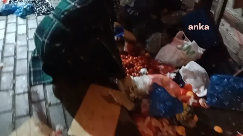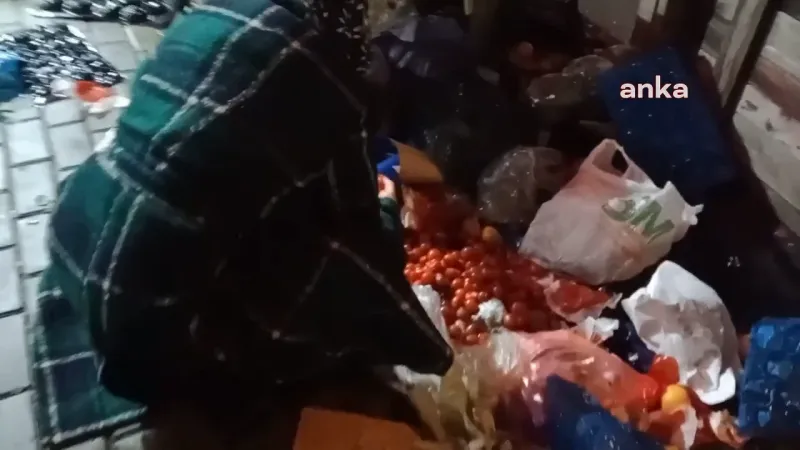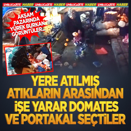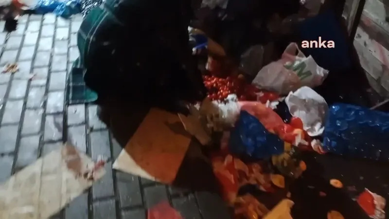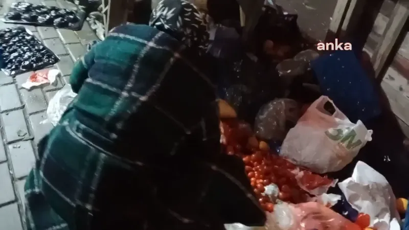 Yürek burkan görüntüler... Yerlere atılmış ezik atıklardan domates, portakal seçmeye çalıştılar