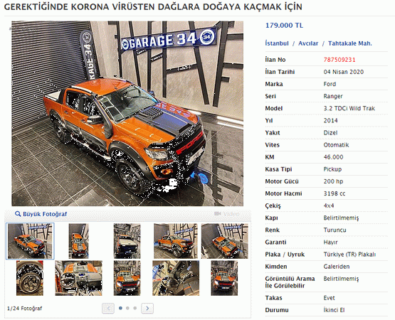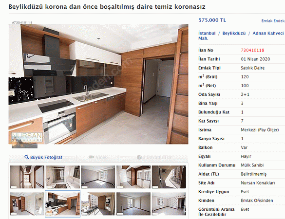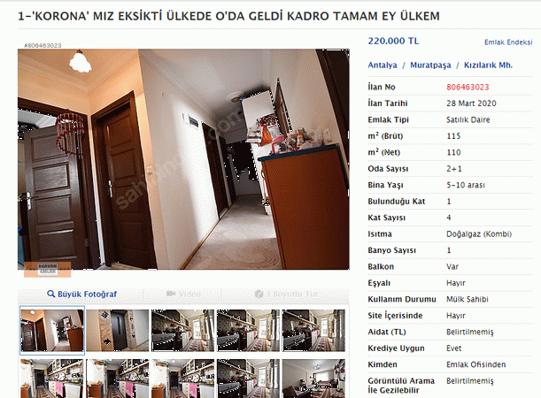 Durumdan dolayı satmak istediği ürünleri satamayan kişilerin, online satış sitelerine yükledikleri ilanlarda, "koronasız temiz daire" , "korona indirimi" , " korona bitince bu fiyatı bulamazsınız" ve benzeri ilanlar görenleri güldürdü.