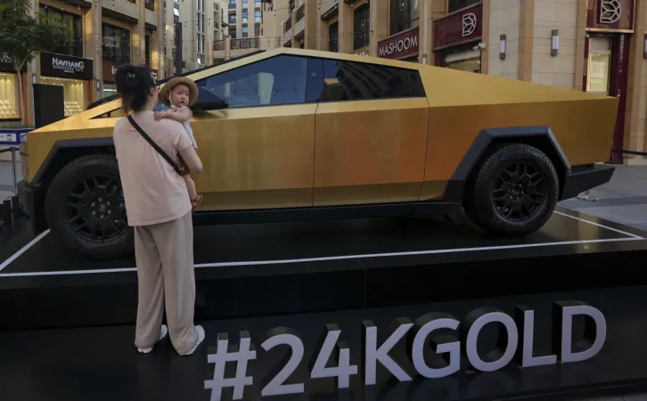 Çarşıdan alışveriş yapan altın kaplama Tesla kazanıyor