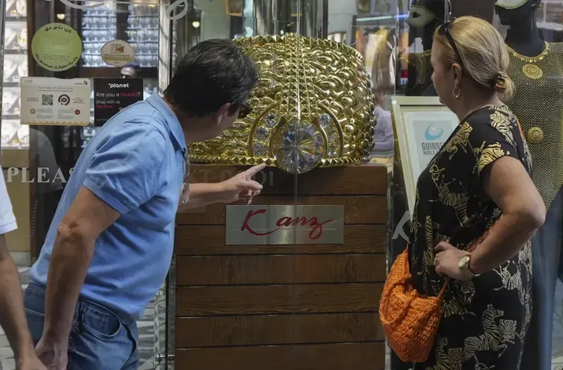 Birleşik Arap Emirlikleri'nin (BAE) Dubai kentindeki Altın Çarşısı'nda, kıyafetlerden biblolara, dünyanın en büyük yüzüğünden Tesla'ya kadar altından yapılmış çeşit çeşit ürün satılıyor.