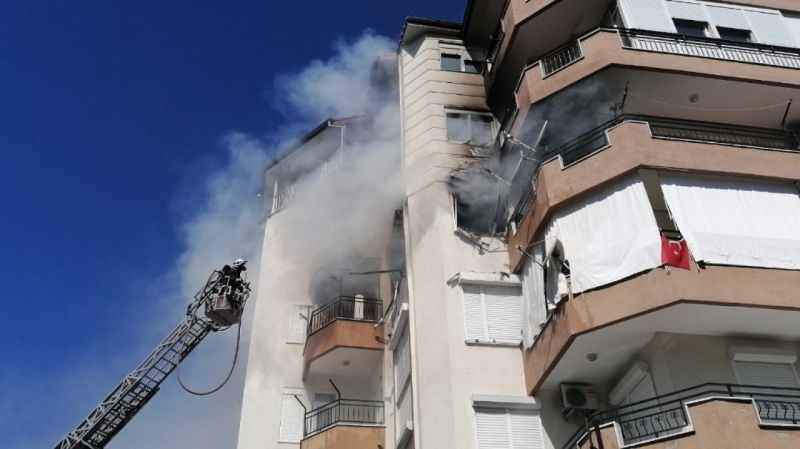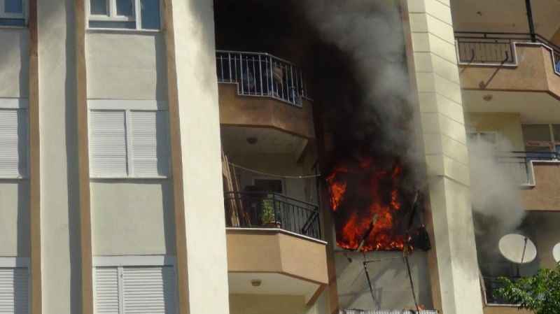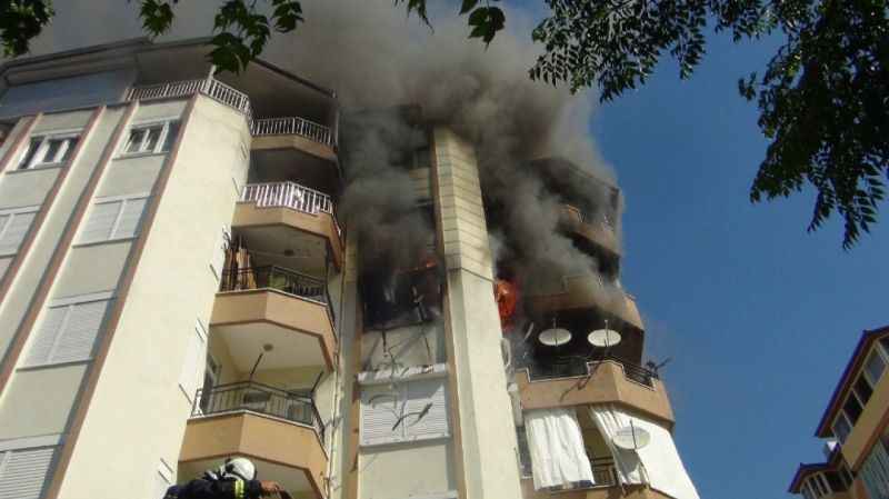 Bir anda daireden çıkan dumanı gören vatandaşlar, itfaiye ekiplerine ihbarda bulundu. Dairenin plastik pencereleri alev alev yanarken, etrafa saçılan parçalar alt katın penceresinin de tutuşmasına neden oldu.