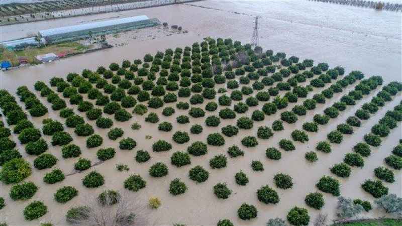 Antalya- Alanya D400 yolunun Serik geçişinde bulunan çoğunlukla Çandır Mahallesi'ndeki tarım arazileri, seralar ve portakal bahçeleri şiddetli yağış nedeniyle tamamen sular altında kaldı. Bazı iş yerlerinde de su baskınları meydana geldi.