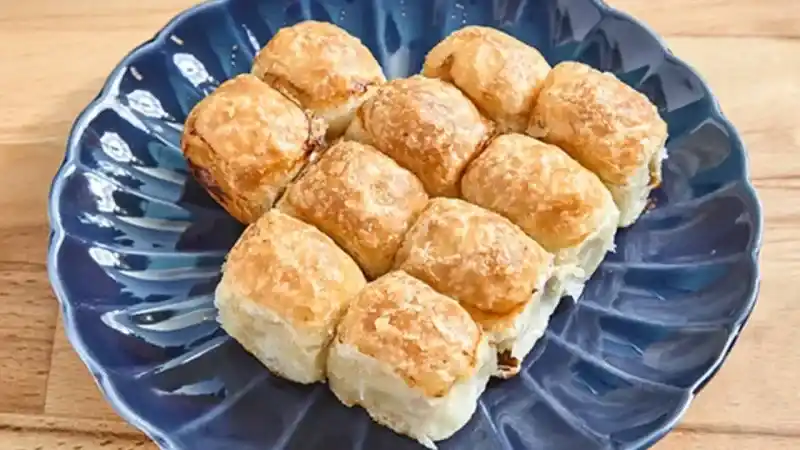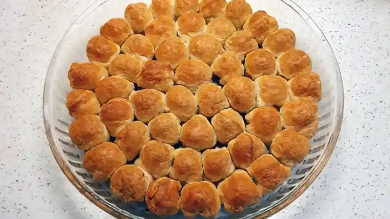 · Ruloyu dörder cm’lik küçük parçalara bölün. Açıkta kalan kenarları alt kısımda birleştirerek fırın tepsinize dizin.