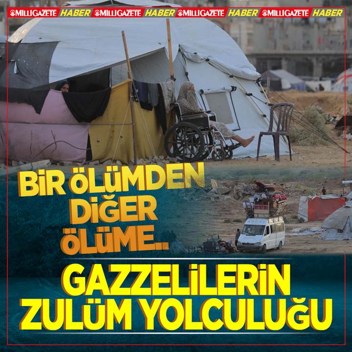 Soykırımcı İsrail'in vahşi saldırılarıyla dar ettiği Gazze'den zorunlu göçe tabi tutulan Filistinliler, adeta bir ölümden diğerine sürükleniyor.